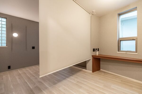 寝室とワークスペースの間を 電動ロールスクリーンで仕切ってみました